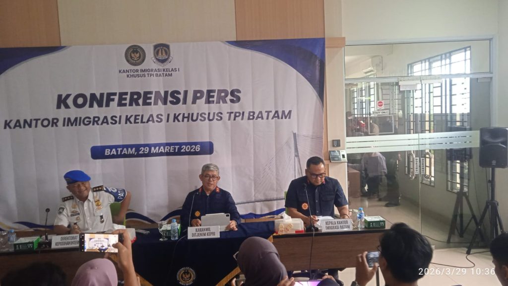 Klarifikasi resmi disampaikan dalam konferensi pers pada Minggu (29/03/2026) yang dihadiri Kepala Kantor Wilayah Direktorat Jenderal Imigrasi Kepulauan Riau Ujo Sujoto, Kepala Kantor Imigrasi Batam Hajar Aswad, serta Kasubdit Pengawasan dan Penindakan Direktorat Kepatuhan Internal Imigrasi Washington Napitupulu.