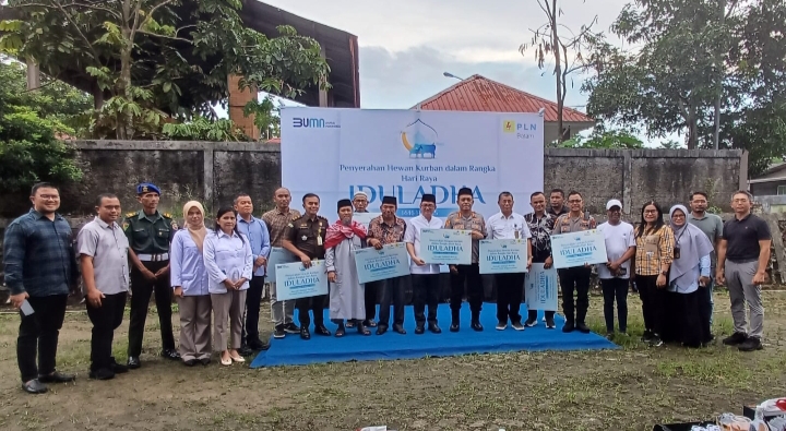 Penyerahan secara simbolis hewan qurban dari PLN Batam untuk perayaan Iduladha 1446 Hijriah di Kota Batam, Rabu...